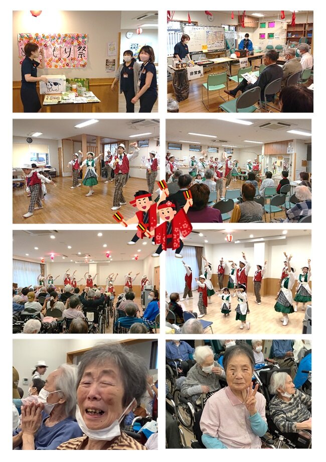 「よさこい」のあとは、各フロアでゲームやおやつ作りをして楽しいひと時を過ごしました。利用者さんからは「どんどん焼きはお祭りの香りだね。」と言っていただき、屋台顔負けの美味しさでしたよ。また来年も楽しみましょう!
